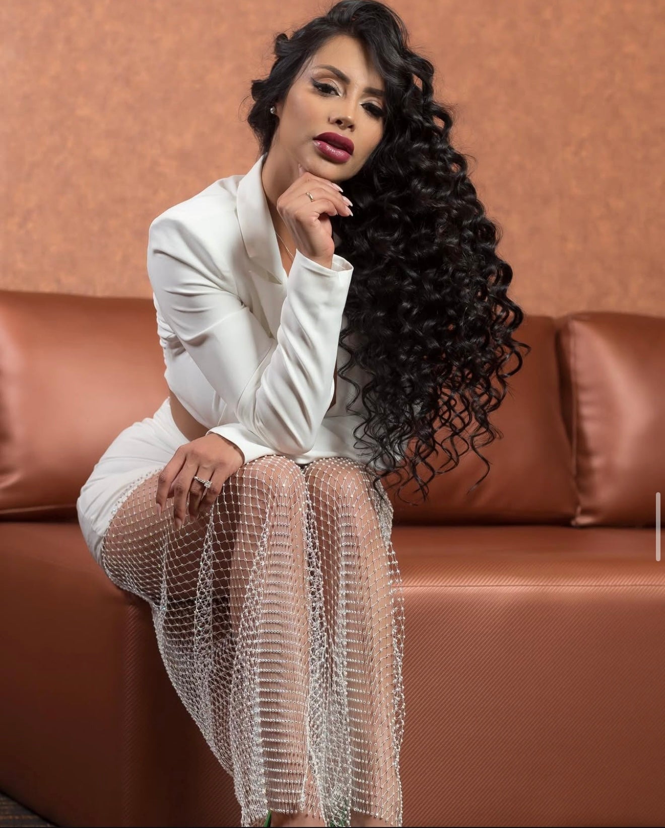 Conjunto casual saco y short con red pedrería